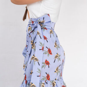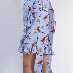 Las faldas son envolventes elaboradas con diseños propios basados en los elementos estéticos y simbólicos del Catatumbo. Los diseños tanto de las telas como del estampado de las camisetas han sido realizados de manera colectiva por las integrantes de la Asociación Puntadas por la Paz. Estampados de las telas que representan la flora, la fauna y los colores de los atardeceres. La flor de chocolata, de Ixora, los pájaros y la biodiversidad de la región hablan de la magia del Catatumbo.